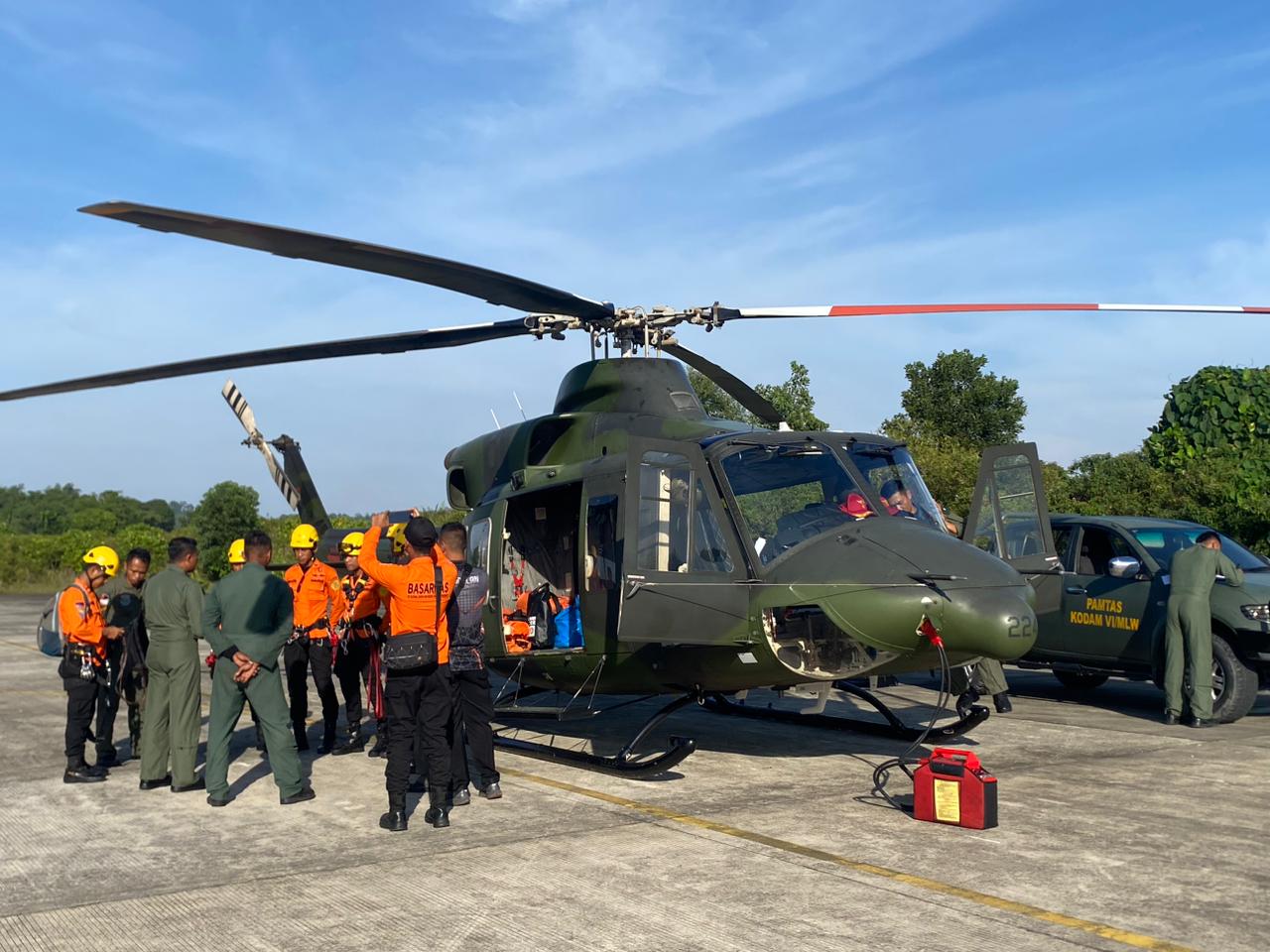 Pangdam VI/Mulawarman, Mayjen TNI Tri Budi Utomo, turut membenarkan kejadian tersebut dan memerintahkan untuk memberikan bantuan dukungan dengan mengerahkan Heli BKO Koopsdam VI/Mlw jenis Bell-412EPI No.Reg.Ha-5224. Tim Gabungan tersebut terdiri dari Crew Heli antara lain Mayor Cpn Luthfi Dian Pambudi, Lettu Cpn Mutjiono, Serka Soffan Yusuf, Serka Mukti Ary dan Tim Basarnas antara lain Mashuri, Hamzah, Fajar, Yusdi, Rangga dan Muzfadi mulai melakukan pencarian pada pukul 16.45 WITA dengan rute Tarakan-Binuang-Area-Malinau.